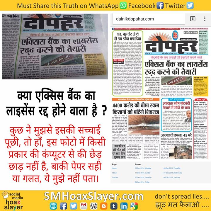 कुछ ने मुझसे इसकी सच्चाई पूछी, तो हाँ, इस फोटो में किसी प्रकार की कंप्यूटर से की छेड़ छाड़ नहीं है, बाकी पेपर सही या गलत, ये मुझे नहीं पता।