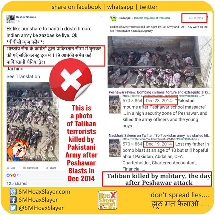 This is a 2 year old photo of Taliban terrorists killed by Pakistani Army after Peshawar Blasts in Dec 2014