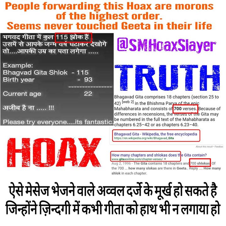 HOAX-Bhagwat Gita has 115 Shlokas and if u deduct ur year of birth, u’ll get ur age.