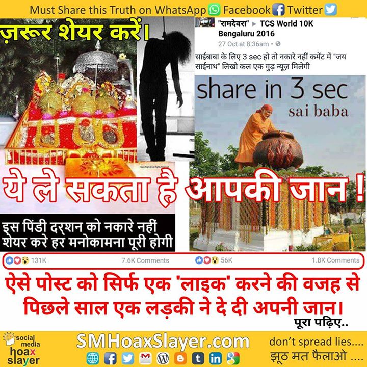 कृपया बताइये की आप शेयर करेंगे तो मैं फिर थोड़ी देर में वो पोस्ट करूँ। https://www.facebook.com/SMHoaxSlayer/photos/a.147357335599672.1073741828.140690692933003/368330060169064/?type=3