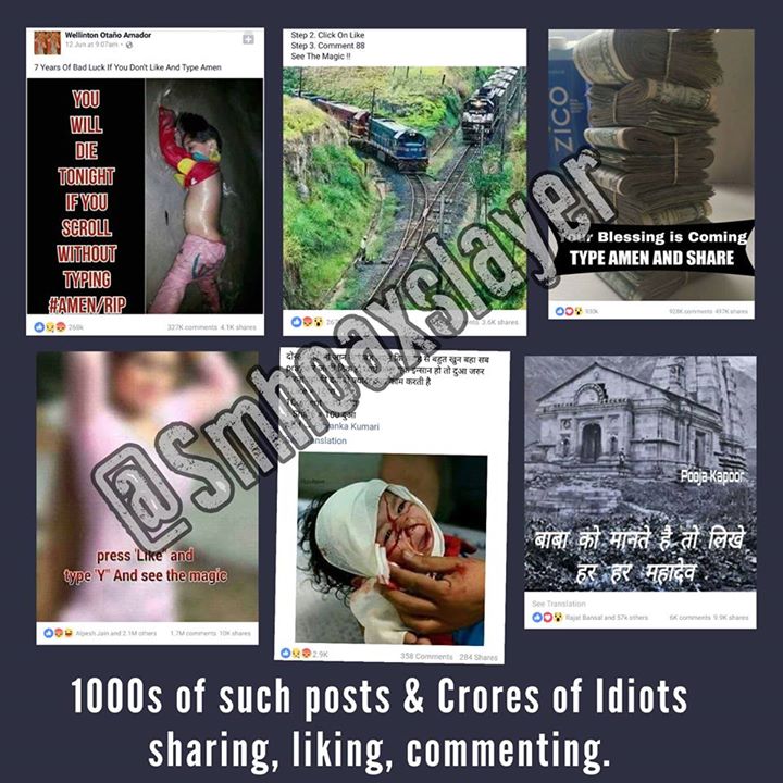 1000s of such posts & Crores of Idiots sharing, liking, commenting. NO COMMENTS 🙁 https://www.facebook.com/SMHoaxSlayer/photos/a.147357335599672.1073741828.140690692933003/301107940224610/?type=3