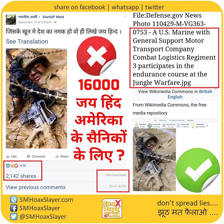 सही: https://commons.wikimedia.org/w/index.php?title=File:Defense.gov_News_Photo_110429-M-VG363-0753_-_A_U.S._Marine_with_General_Support_Motor_Transport_Company_Combat_Logistics_Regiment_3_participates_in_the_endurance_course_at_the_Jungle_Warfare.jpg&mobileaction=toggle_view_desktop https://www.facebook.com/SMHoaxSlayer/photos/a.147357335599672.1073741828.140690692933003/344484719220265/?type=3