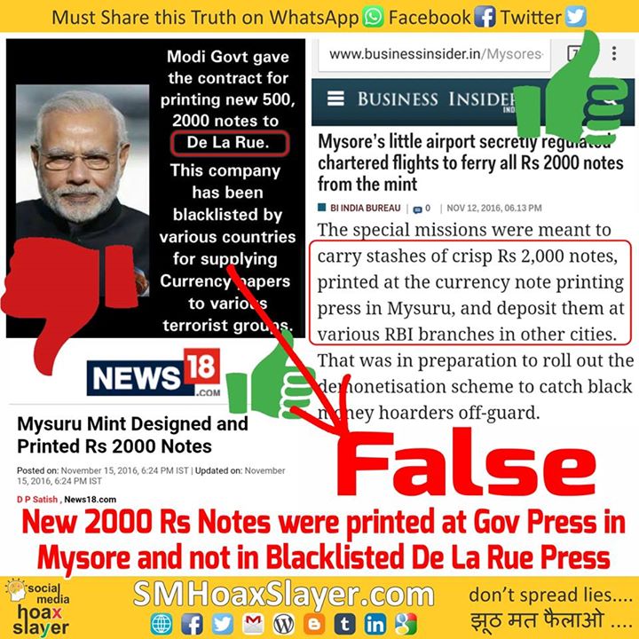 2000 Rs. Note were Printed in a Gov Press at Mysore and Not by Blacklisted press De La Rue.