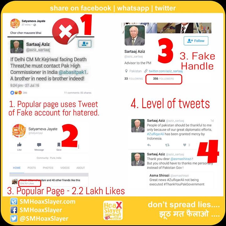 1. Sartaj Aziz is not on social Media anywhere at all.