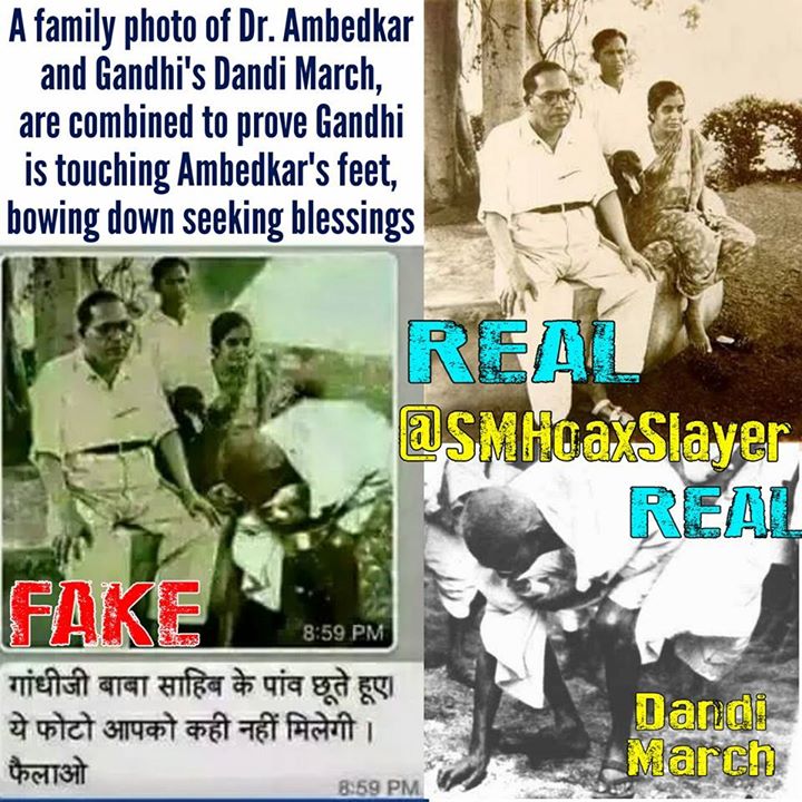 A #Viral #photo showing #Gandhiji touching Dr. #Ambedkar ’s feet. Actually one is #JaiBheem family photo, another is from Dandi March, picking up Salt
