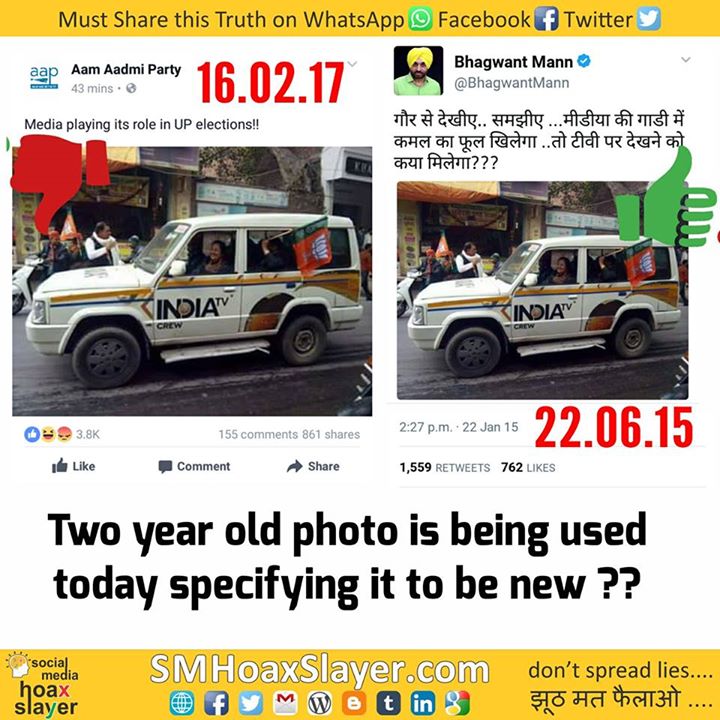 AAP official page uses 2 year old photo as current, claiming media is campaigning for BJP which obviously is false NOW