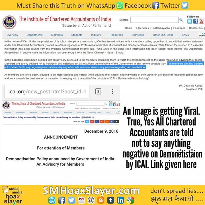 Source: http://icai.org/new_post.html?post_id=13158&c_id=219 https://www.facebook.com/SMHoaxSlayer/photos/a.147357335599672.1073741828.140690692933003/389378611397542/?type=3