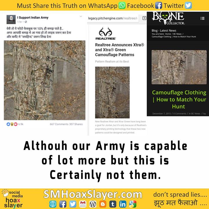 2. http://www.bonecollector.com/camouflage-clothing-how-to-match-your-hunt/ https://www.facebook.com/SMHoaxSlayer/photos/a.147357335599672.1073741828.140690692933003/390699847932085/?type=3