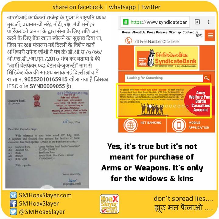 #Army #Welfare #Fund Yes the account number is true. You can proudly make payment directly into this account but in Viral message a false line is added. No this money will not be used for procurement of Arms or Weapons. This account js specifically for widows and kins of our soldiers.
