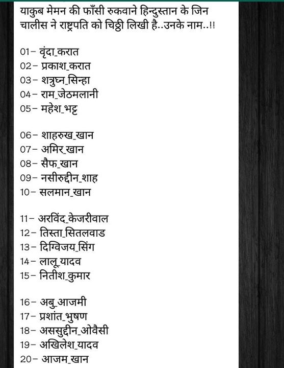 At the time of Yakub memon hanging this message of letter for not hanging was making rounds which has many false names including few actors and ministers from AAP i.e. Kejriwal and others which usually is initiated by modi bhakt and spread by you.