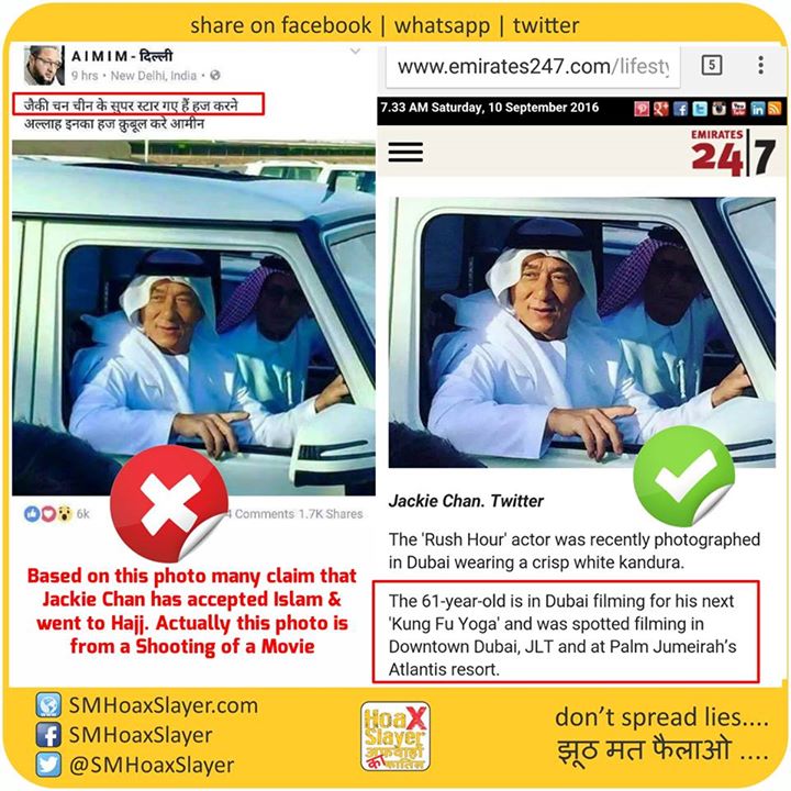Based on this photo many claim that @EyeOfJackieChan has accepted Islam & went to Hajj. Actually this photo is from a Shooting of a Movie