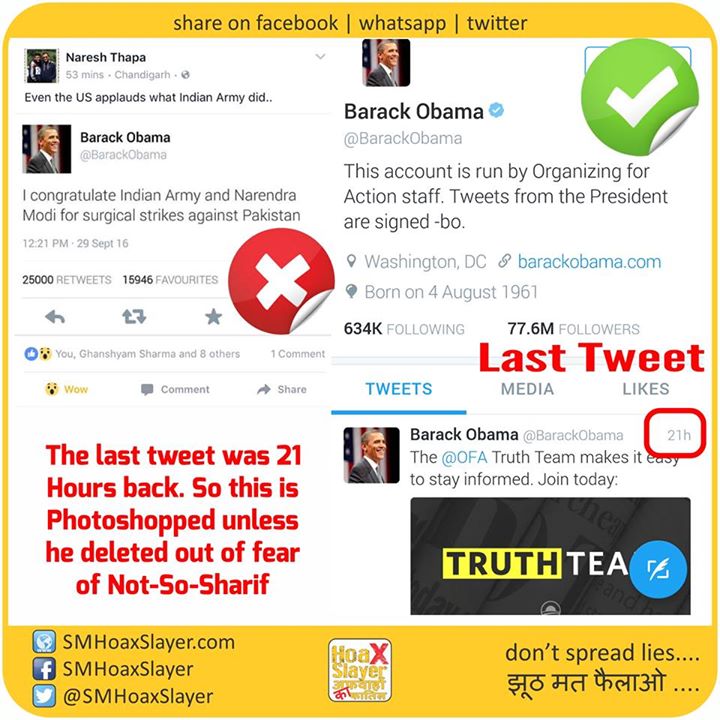 #Breaking @BarackObama deleted a tweet congatulating @NarendraModi after a threat from Not-So-Sharif LOL
