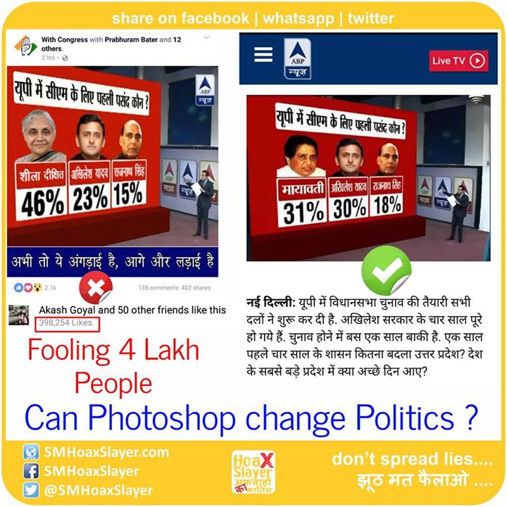 Can #Photoshop change #Politics ? Can it help #Congress to win? Page with 3.2 Lakh likes posting edited Image.