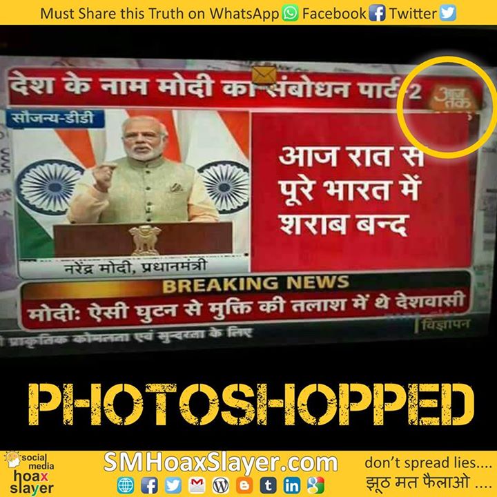शराब नहीं हो रही बंद, आजतक का लोगो देखिये, कटा हुआ है https://www.facebook.com/SMHoaxSlayer/photos/a.147357335599672.1073741828.140690692933003/403343490001054/?type=3