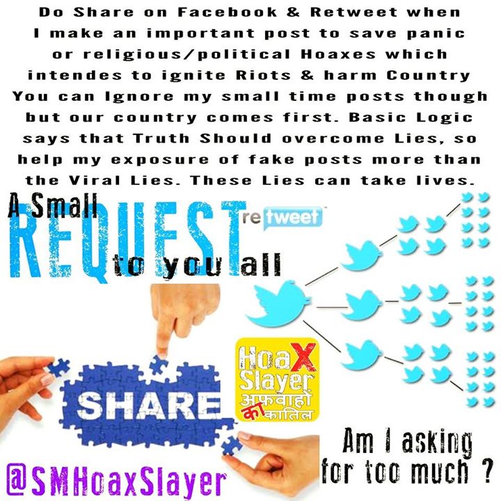 You can Ignore my small time posts though but our country comes first. Basic Logic says that Truth Should overcome Lies, so help my exposure of fake posts more than the Viral Lies. These Lies can take lives. http://ift.tt/1Sk6GoJ