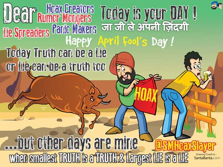 Dear #Hate #Mongers #Hoax #Creators #Rumor #Mongers #Panic #Makers Happy #AprilFool ’s Day. But other Days r mine when a truth is a truth and lie is a lie http://ift.tt/1M4L4MC