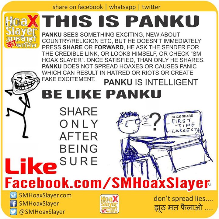 आप सभी को धन्यवाद। आपमें से कुछ ने इन सच्चाइयों को लोगो तक पहुंचाने में मुझे मदद का सुझाव दिया ताकि ये लोगोंकी झूठ में विश्वास करने और उसे फॉरवर्ड करने से पहले ही सच पता हो।