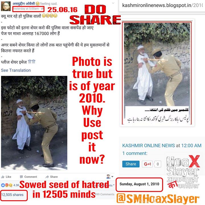DO SHARE/RT WIDELY! Owasi posted a 6 year old photo to entice communal hatred.