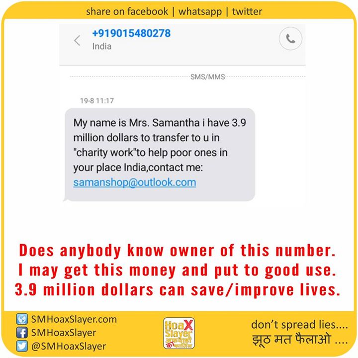 3.9 million dollars can save/improve lives. https://www.facebook.com/SMHoaxSlayer/photos/a.147357335599672.1073741828.140690692933003/331426710526066/?type=3