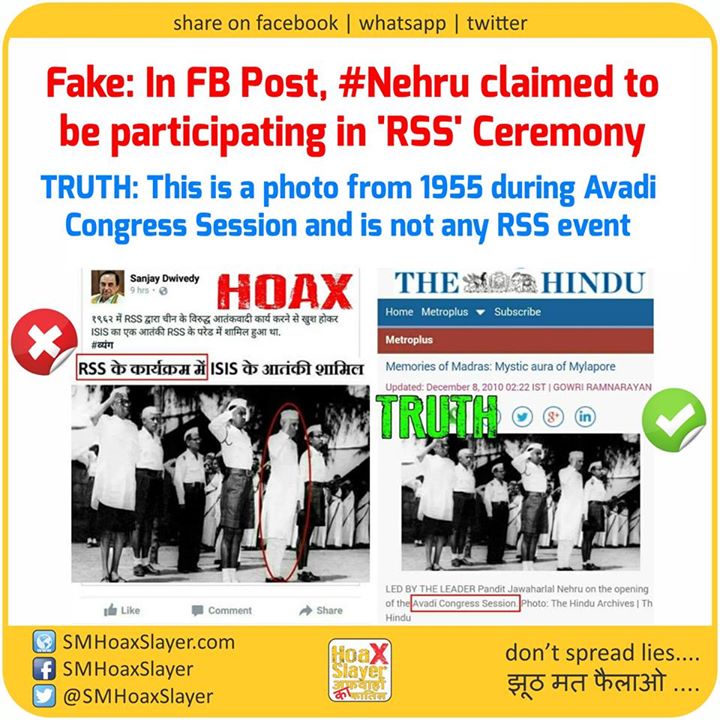 Fake: In FB Post, #Nehru @INCIndia claimed to be participating in @RSSOrg ‘RSS’ Ceremony
