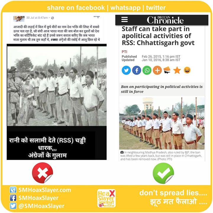 Source: http://www.deccanchronicle.com/150226/nation-current-affairs/article/staff-can-take-part-apolitical-activities-rss-says https://www.facebook.com/SMHoaxSlayer/photos/a.147357335599672.1073741828.140690692933003/321086961560041/?type=3