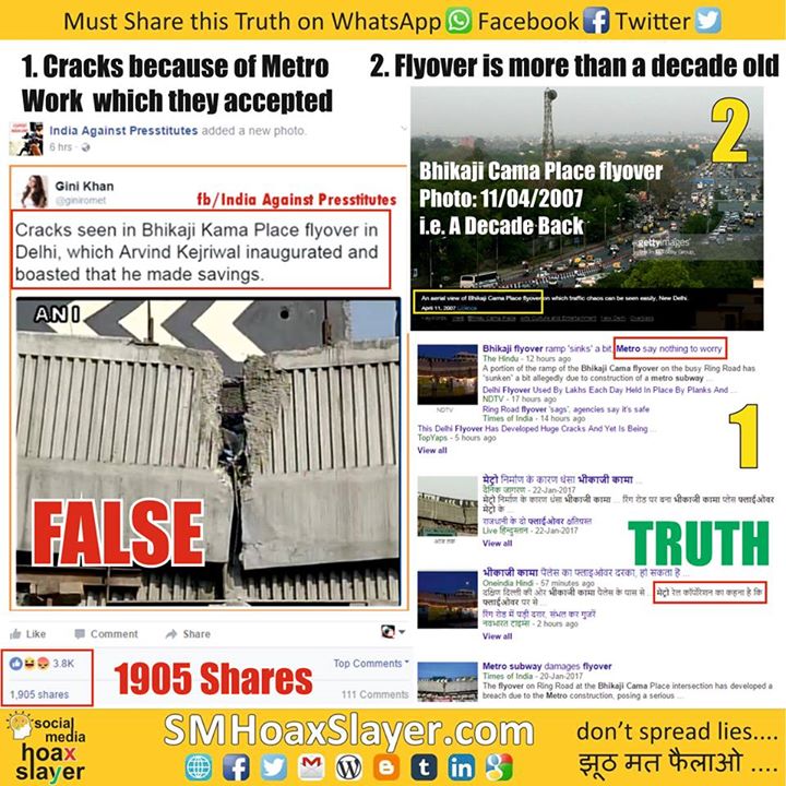 False: Cracks in Bhikaji Cama Place Flyover inaugurated by @ArvindKejriwal