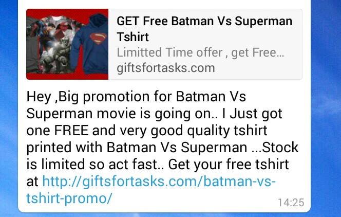 Getting this message in few whatsapp groups lately. did any one try and really received tshirt. i feel its usual chain letteer sort of Hoax. please confirm http://ift.tt/1MKbYUC