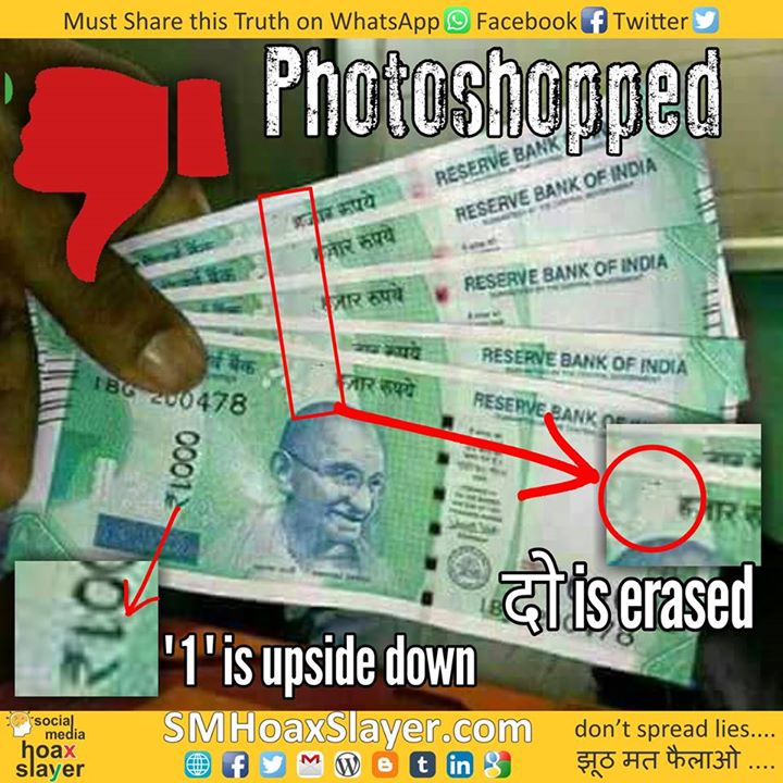 – when 500 Rs Note is Green, why would 1000 should also be ? Last photoshop in blue color was more convincing https://www.facebook.com/SMHoaxSlayer/photos/a.147357335599672.1073741828.140690692933003/395986614070075/?type=3