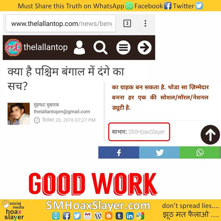 Good Work The Lallantop @TheLallanTop https://www.facebook.com/SMHoaxSlayer/photos/a.147357335599672.1073741828.140690692933003/394848387517231/?type=3