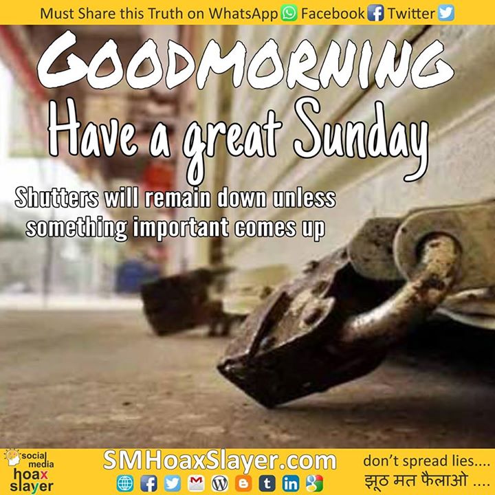 Have a great sunday. Shutters will remain down unless something important comes up. 😉 https://www.facebook.com/SMHoaxSlayer/photos/a.147357335599672.1073741828.140690692933003/428071217528281/?type=3