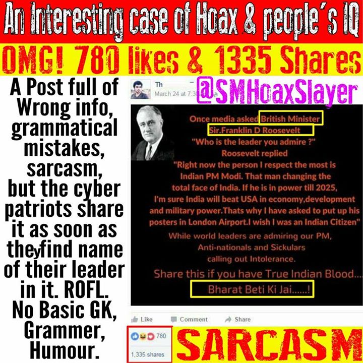 #Hilarious See the #beauty of #HOAX here. The guy posted this merely as sarcasm, forget about checking, people don’t even know basics. ROFL. 1335 SHARES REALLY ??