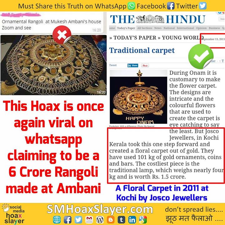 Hoax: 6 Crore Rangoli at Ambani house.