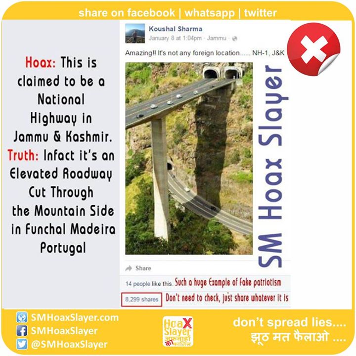 HOAX: A Bridge, part of National Highway 1 in J&K