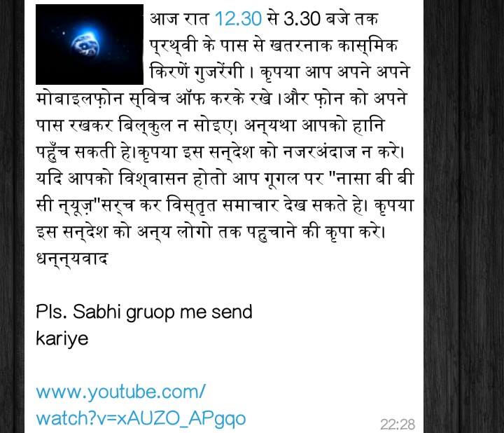 Hoax – Cosmic Rays may hurt you if you keep mobile near you