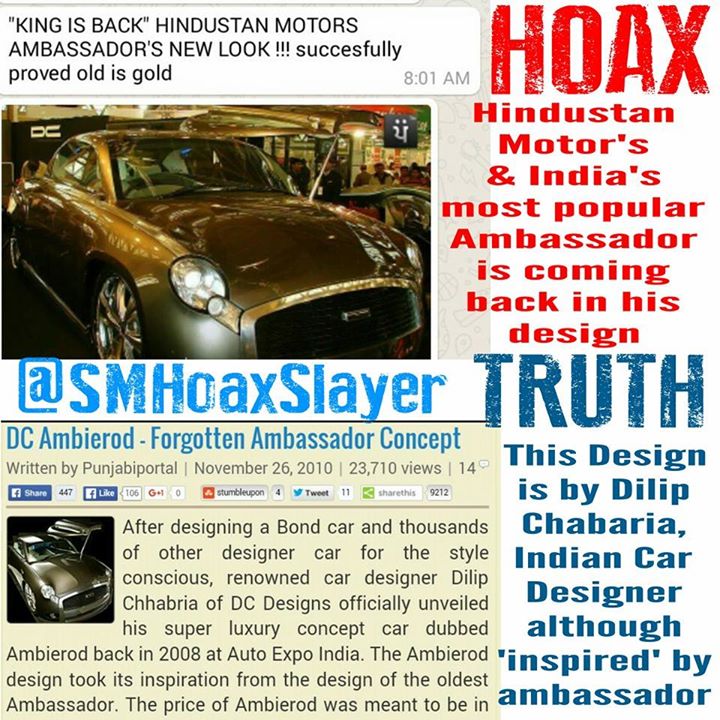 HOAX: #HINDUSTAN #MOTOR’S #AMBASSADOR’S NEW LOOK