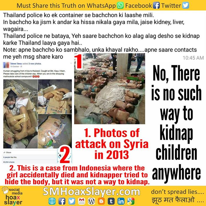 Hoax: Kids found in a container in Thailand being kidnapped for stealing organs.