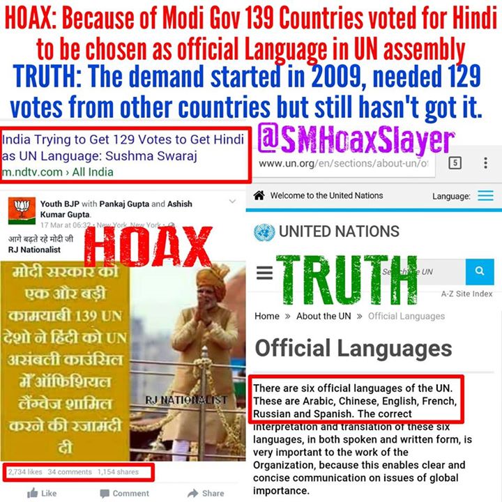 HOAX: #Modi Gov #Achievement – #Hindi is #selected as @UN ’s #Official #Language