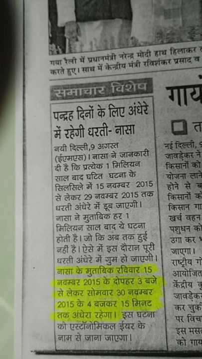 HOAX – NASA says Entire World will remain in darkness for 15 days starting from 25th November