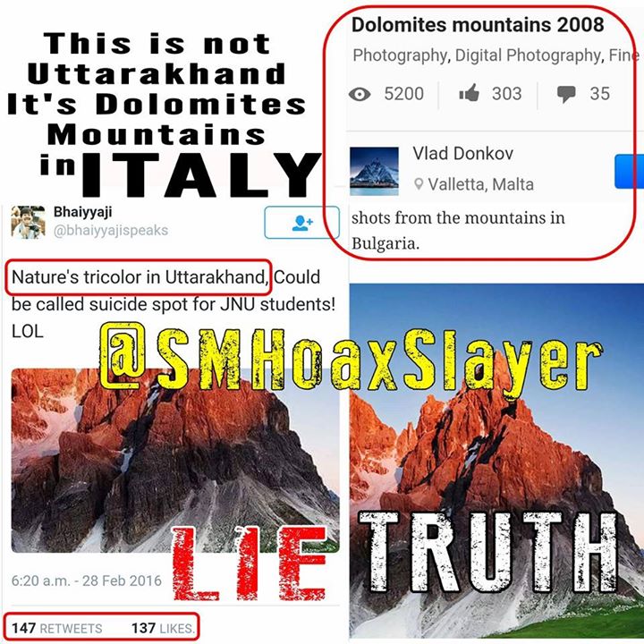 HOAX: Nature’s Tricolor combination is being spread as mountains of Uttarakhand which actually are Dolomites Mountains in Italy.