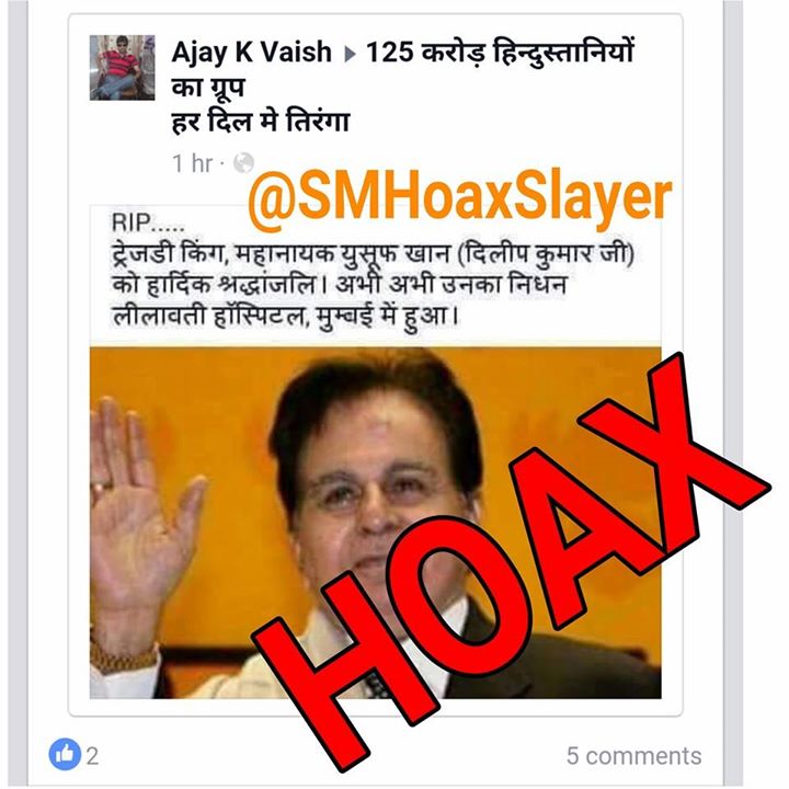 HOAX: News Of Death of actor #DilipKumar