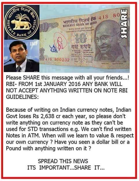 HOAX – Notes with writings on it will not be accepted from 01/01/16