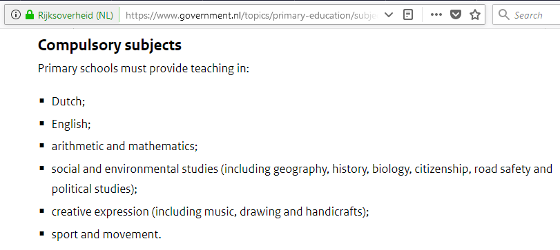 Here is the list of compulsory subjects posted on Official Netherlands Government website which doesn’t have it.