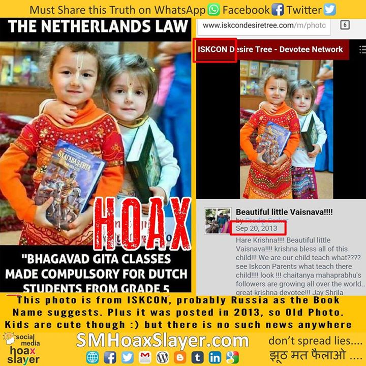 Kids are cute though 🙂 but there is no such news that Netherlands has made Bhagwat Gita compulsory for students in Grade 5 and above anywhere.