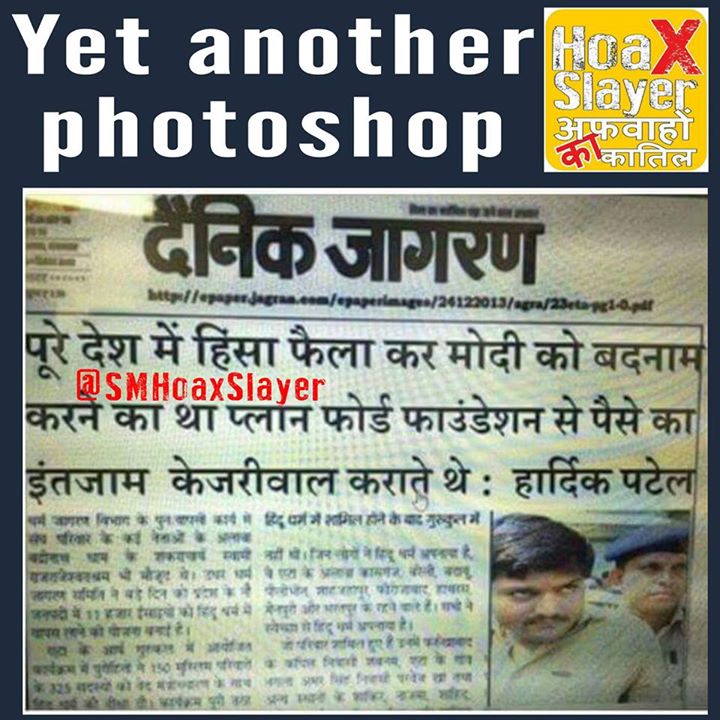 SOURCE – despite the basic flaw, I called up Dainik Jagran and talked to his Social Media handling guy and he also agreed but he asked me to drop a mail which I did and shall post his reply later. https://www.facebook.com/SMHoaxSlayer/photos/a.147357335599672.1073741828.140690692933003/308979982770739/?type=3