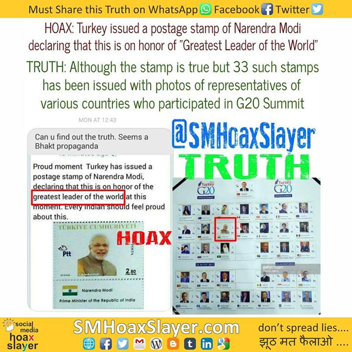 HOAX: Turkey issued a postage stamp of Indi’s PM Narendra Modi declaring it as an honor of “Greatest Leader of the World”