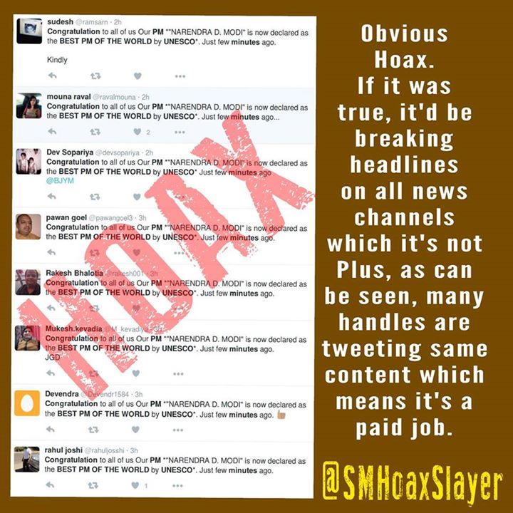 #HOAX: @UNESCO has declared #Narendra #Modi as “Best PM of the world”