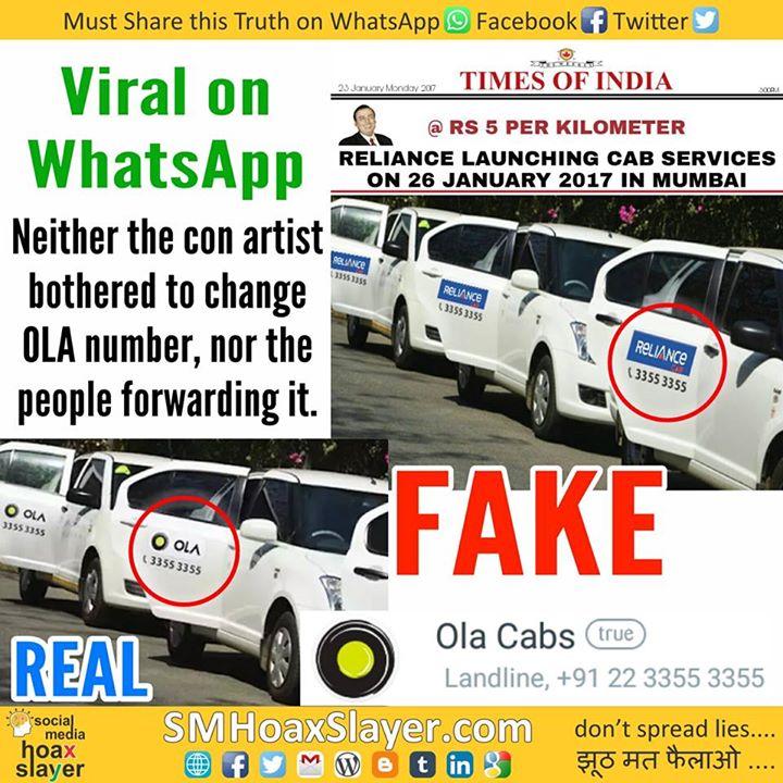 Neither the con artist bothered to change OLA number, nor the people forwarding it.
