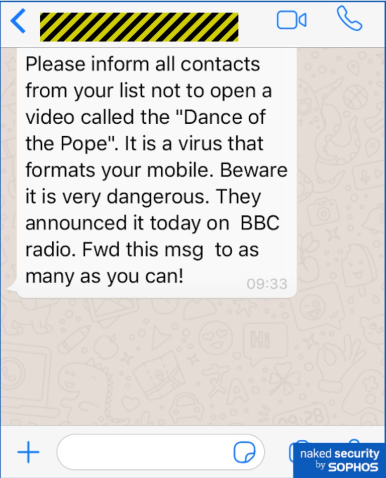 “Pls inform to all the contacts on your list not to accept a video called the “Amit Shah disowns Modi” It is a virus that formats your mobile. It is very dangerous. They announced it on the radio today. Fwd this MSG to as many as you can.