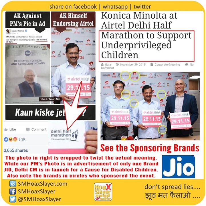 While our PM’s Photo is in advertisement of only one Brand JIO, Delhi CM is in launch for a Cause for Disabled Children.