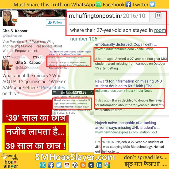 4. http://www.timesnow.tv/india/article/jnu-stand-off-over-missing-student-najeeb-ahmed-–-a-timeline/51417 https://www.facebook.com/SMHoaxSlayer/photos/a.147357335599672.1073741828.140690692933003/373707486297988/?type=3